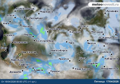 Россия - осадки и облачность за сутки