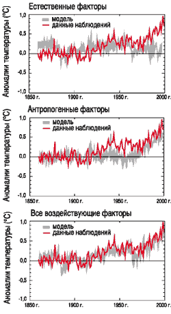 воздействующих факторов (таких, как парниковый газ и концентрации аэрозоля и