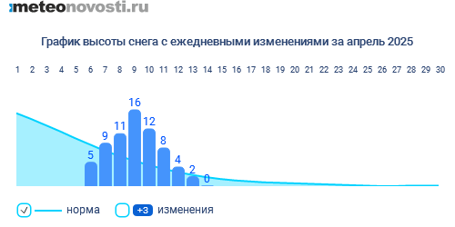 Интересно вспомнить, что в прошлом 2025 году высота снежного покрова в середине января сошла «на нет», а максимум высоты снега в 16 см принадлежит 9 апреля 2025 года.