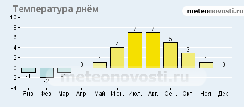 Ян-Майен: климатические данные (среднемесячные значения)![]() ![]() ![]() ![]() ![]() Данные не могут быть использованы для расчётов и предназначены только для того, чтобы получить примерное представление о погоде в данном месте.