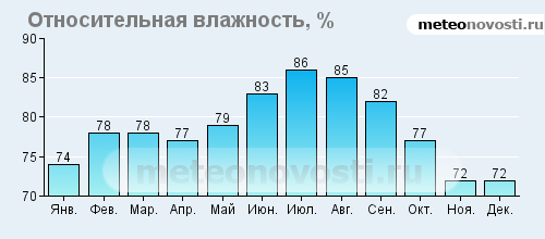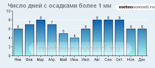 Февраль холодный и сухой - август жаркий.