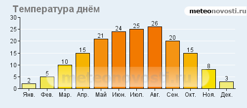 Баден: климатические данные (среднемесячные значения)![]() ![]() ![]() Данные не могут быть использованы для расчётов и предназначены только для того, чтобы получить примерное представление о погоде в данном месте.