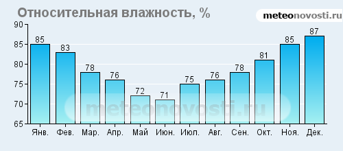 Февраль холодный и сухой - август жаркий.