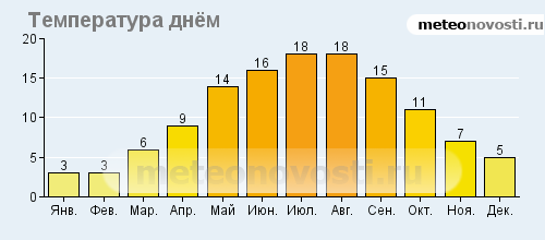 Берген: климатические данные (среднемесячные значения)![]() ![]() ![]() ![]() ![]() ![]() ![]() Данные не могут быть использованы для расчётов и предназначены только для того, чтобы получить примерное представление о погоде в данном месте.