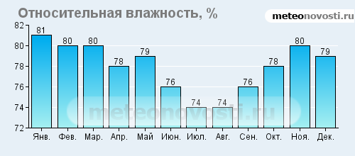 Февраль холодный и сухой - август жаркий.