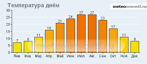 Февраль холодный и сухой - август жаркий.