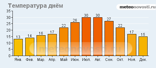 Кальяри: климатические данные (среднемесячные значения)![]() ![]() ![]() ![]() Данные не могут быть использованы для расчётов и предназначены только для того, чтобы получить примерное представление о погоде в данном месте.