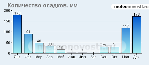 Февраль холодный и сухой - август жаркий.