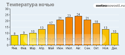 Айя-Напа: климатические данные (среднемесячные значения)![]() ![]() ![]() ![]() Данные не могут быть использованы для расчётов и предназначены только для того, чтобы получить примерное представление о погоде в данном месте.