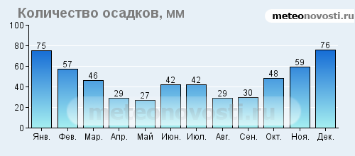 Февраль холодный и сухой - август жаркий.