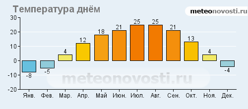 Февраль холодный и сухой - август жаркий.