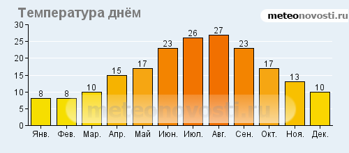 Гагра: климатические данные (среднемесячные значения)![]() ![]() ![]() ![]() Данные не могут быть использованы для расчётов и предназначены только для того, чтобы получить примерное представление о погоде в данном месте.