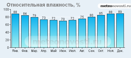 Февраль холодный и сухой - август жаркий.