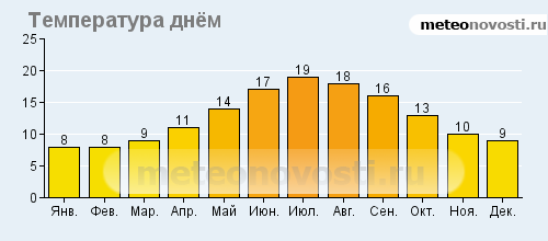 Корк: климатические данные (среднемесячные значения)