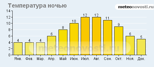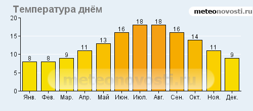 Вексфорд: климатические данные (среднемесячные значения)![]() ![]() ![]() ![]() Данные не могут быть использованы для расчётов и предназначены только для того, чтобы получить примерное представление о погоде в данном месте.