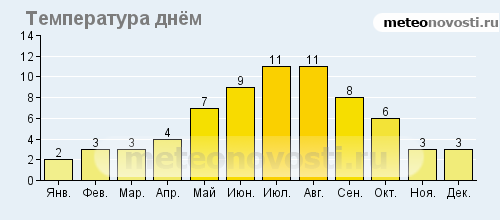 Вестманаэйджар: климатические данные (среднемесячные значения)![]() ![]() ![]() Данные не могут быть использованы для расчётов и предназначены только для того, чтобы получить примерное представление о погоде в данном месте.