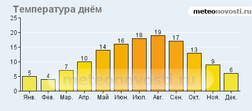 Де-Коог: климатические данные (среднемесячные значения)![]() ![]() ![]() ![]() Данные не могут быть использованы для расчётов и предназначены только для того, чтобы получить примерное представление о погоде в данном месте.