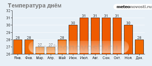 Мансанильо: климатические данные (среднемесячные значения)![]() ![]() ![]() ![]() Данные не могут быть использованы для расчётов и предназначены только для того, чтобы получить примерное представление о погоде в данном месте.
