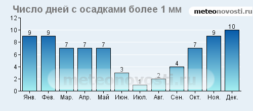 Аяччо: климатические данные (среднемесячные значения)