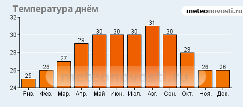 Варадеро: климатические данные (среднемесячные значения)![]() ![]() ![]() ![]() Данные не могут быть использованы для расчётов и предназначены только для того, чтобы получить примерное представление о погоде в данном месте.