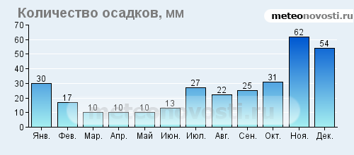 Февраль холодный и сухой - август жаркий.