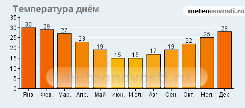 Вальпараисо: климатические данные (среднемесячные значения)![]() ![]() ![]() ![]() Данные не могут быть использованы для расчётов и предназначены только для того, чтобы получить примерное представление о погоде в данном месте.