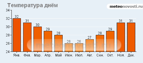Кэрнс: климатические данные (среднемесячные значения)![]() ![]() ![]() ![]() Данные не могут быть использованы для расчётов и предназначены только для того, чтобы получить примерное представление о погоде в данном месте.
