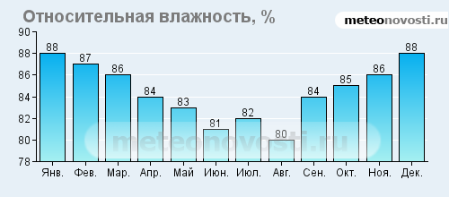 Февраль холодный и сухой - август жаркий.